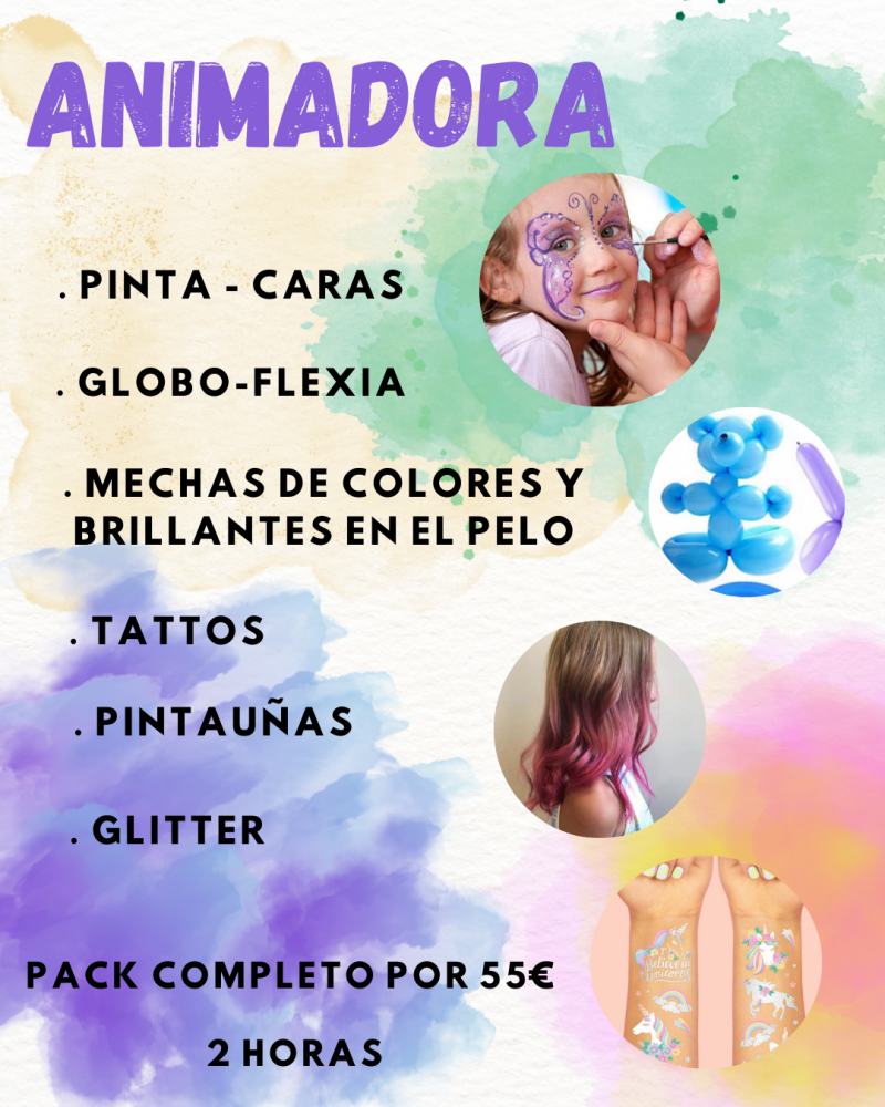 🎊 En nuestro local ahora incluimos animadora para hacer de tu fiesta una experiencia inolvidable. Los peques podrán disfrutar de globoflexia, pintacaras, mechas de colores, glitter y muchas sorpresas más.